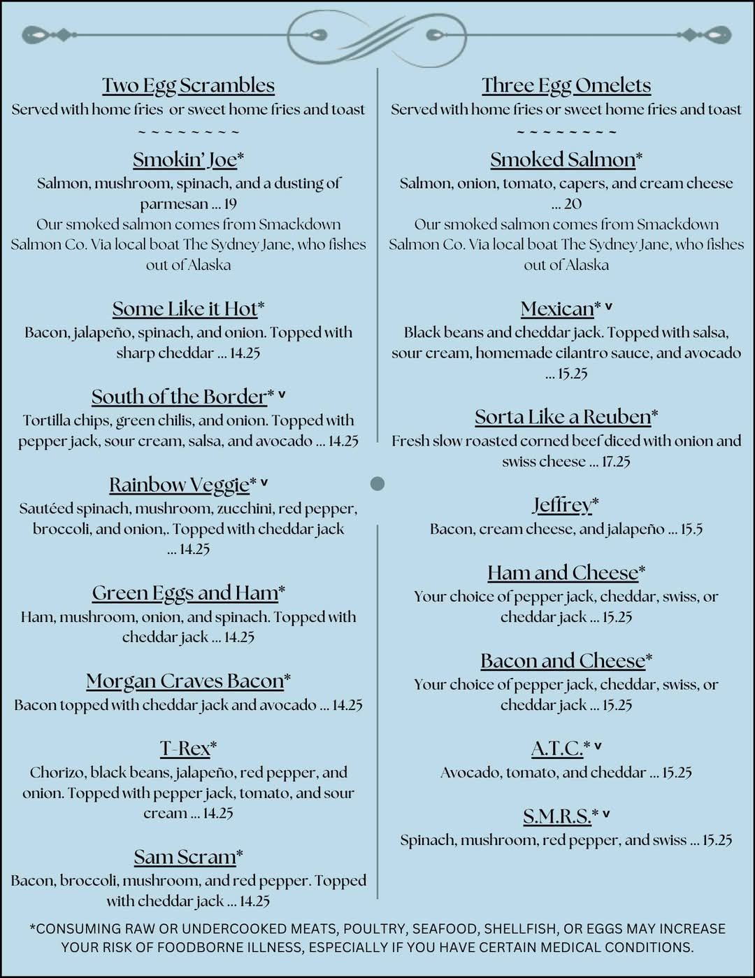 *CONSUMING RAW OR UNDERCOOKED MEATS, POULTRY, SEAFOOD, SHELLFISH, OR EGGS MAY INCREASE YOUR RISK OF FOODBORNE ILLNESS, ESPECIALLY IF YOU HAVE CERTAIN MEDICAL CONDITIONS.