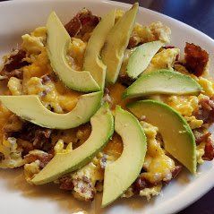 - Fully loaded veggie hash with bacon and cheddar-jack cheese . . . . $14.95