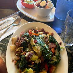 - *Sizzling loaded veggie hash plus two eggs and toast . . . . $17.25